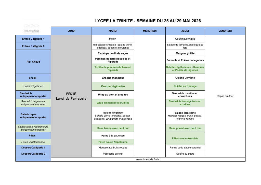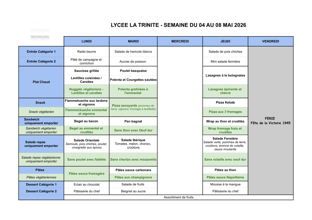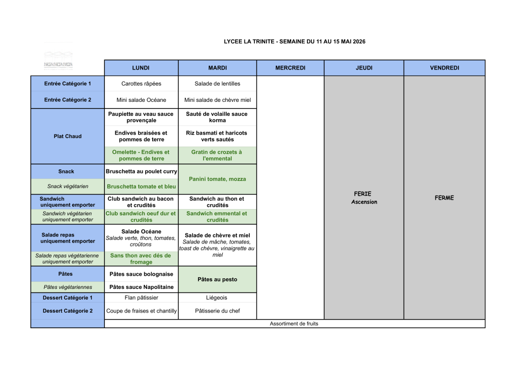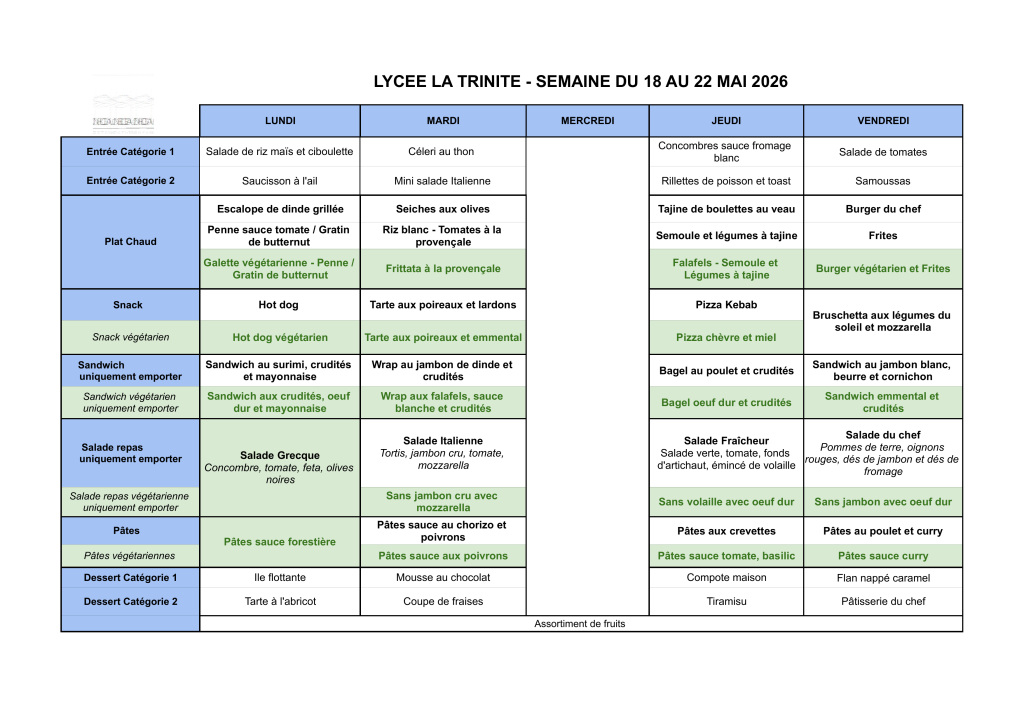 ATTENTION : le 22 août 2025 au plus tard la carte SELF de votre enfant devra être approvisionnée pour un montant de 75 € (CB sur Ecole Directe – service non disponible avant la rentrée pour les nouveaux élèves – , chèque à l’ordre de OGEC LA TRINITE avec nom prénom de votre enfant au dos du chèque ou espèces à l’accueil du lycée).